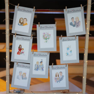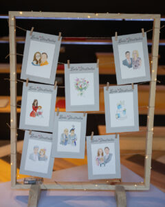 Live illustration is becoming super popular at weddings, but many of your guests will still never have seen it before. Guest portraits make the most thoughtful and treasured of favours, and your friends and loved ones will be thrilled to take home such a sweet memento from your special day!