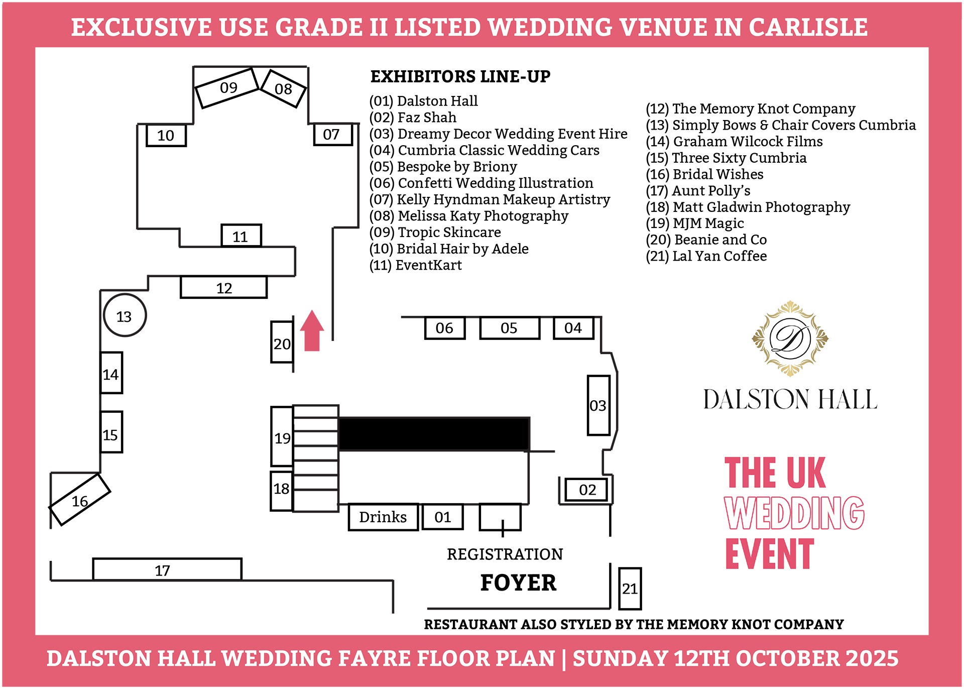 Dalston Hall Wedding Fayre Floor Plan | Sunday 12th October 2025