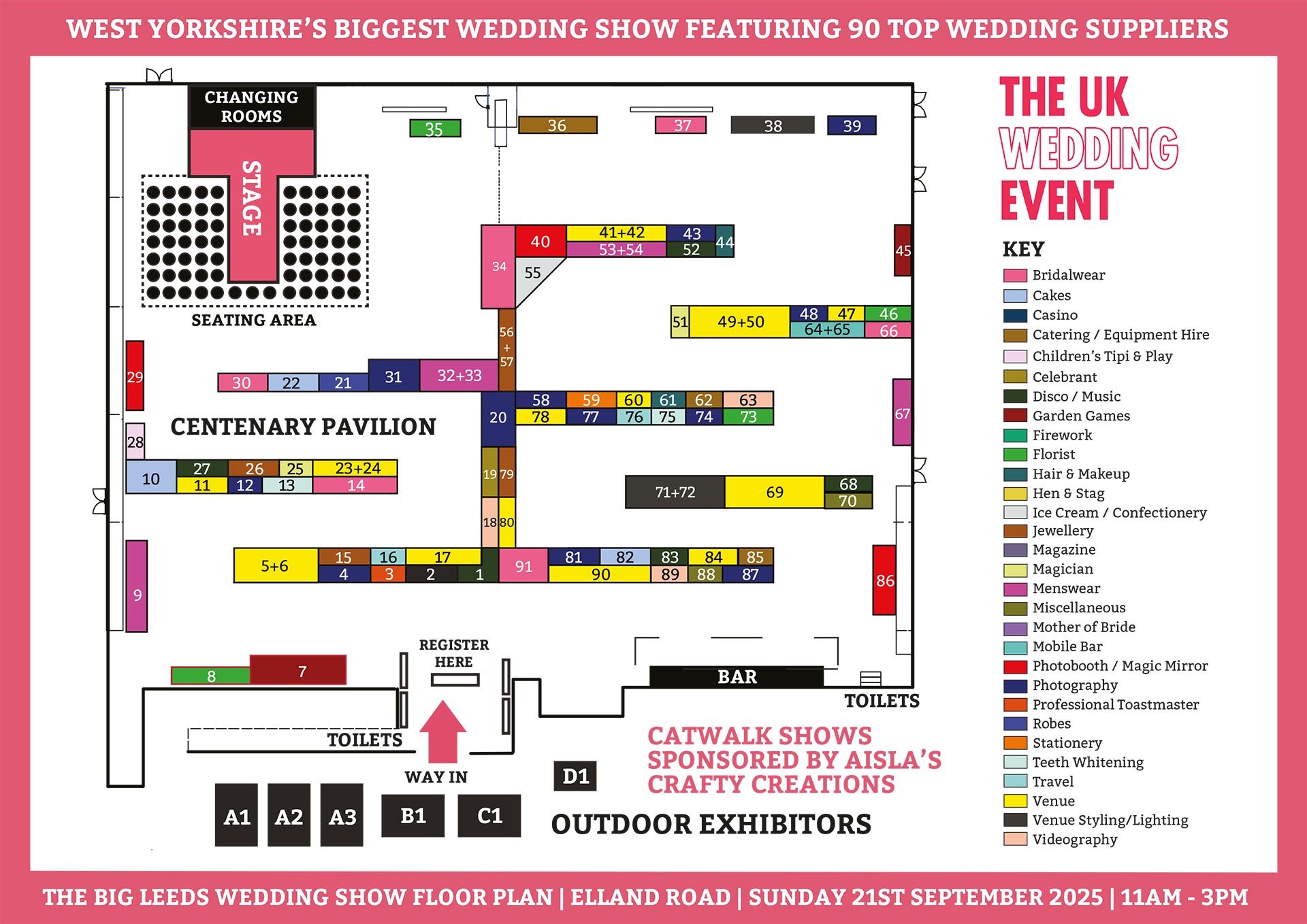 The following wedding suppliers are all booked in for the big Leeds Wedding Show at the Centenary Pavilion at Leeds United’s Elland Road on Sunday 21st September 2025.