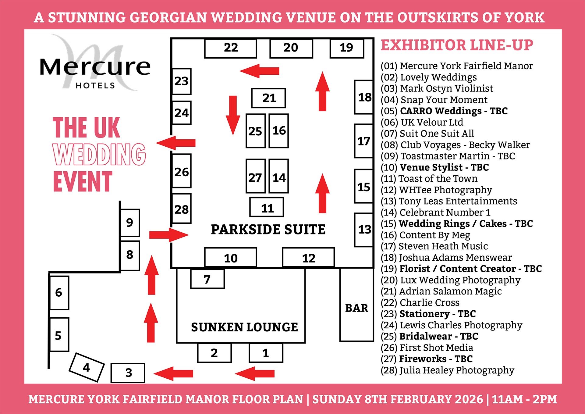 The following wedding suppliers have already confirmed their place to exhibit with us at Mercure York on Sunday 8th February 2026.