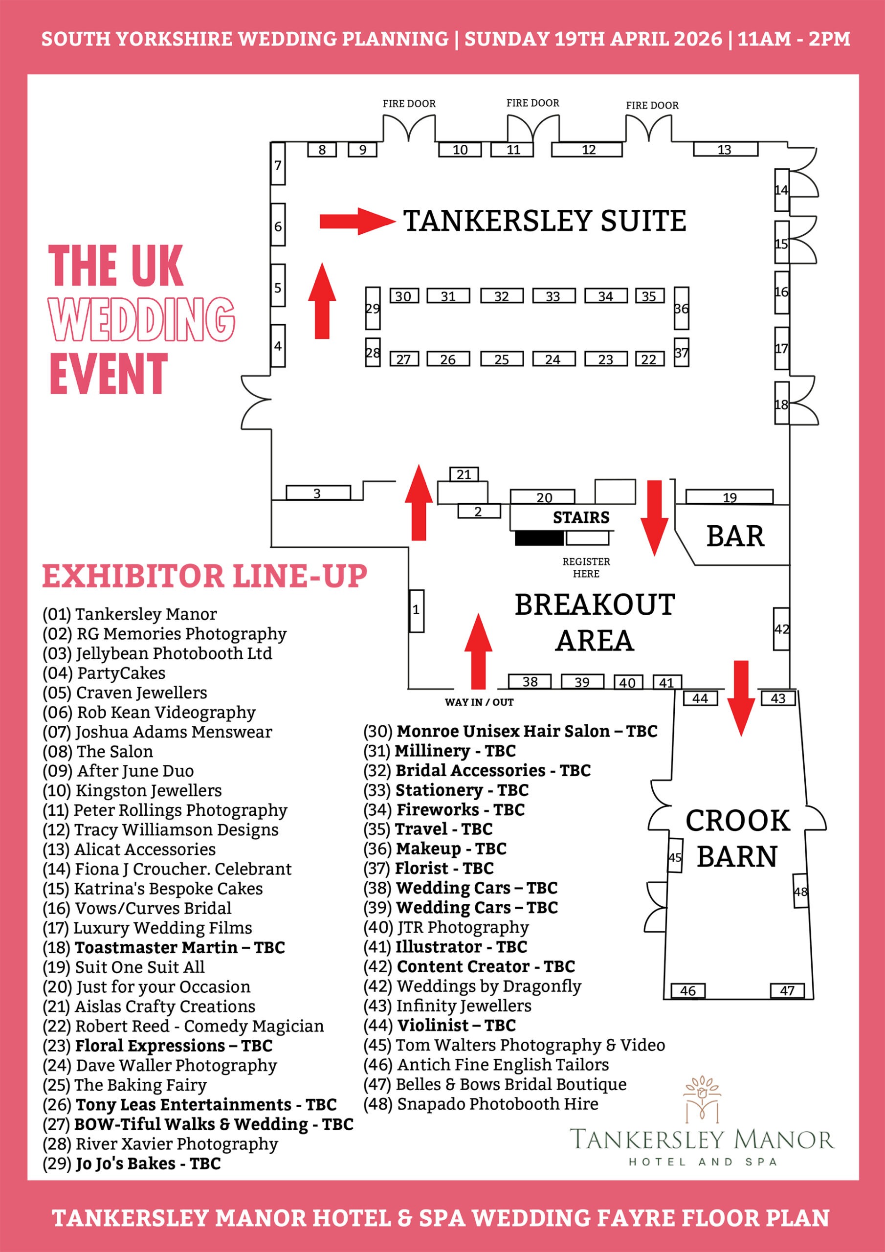 The following wedding suppliers are booked in for our second wedding fayre date of 2026 at Tankersley Manor on Sunday 15th November.