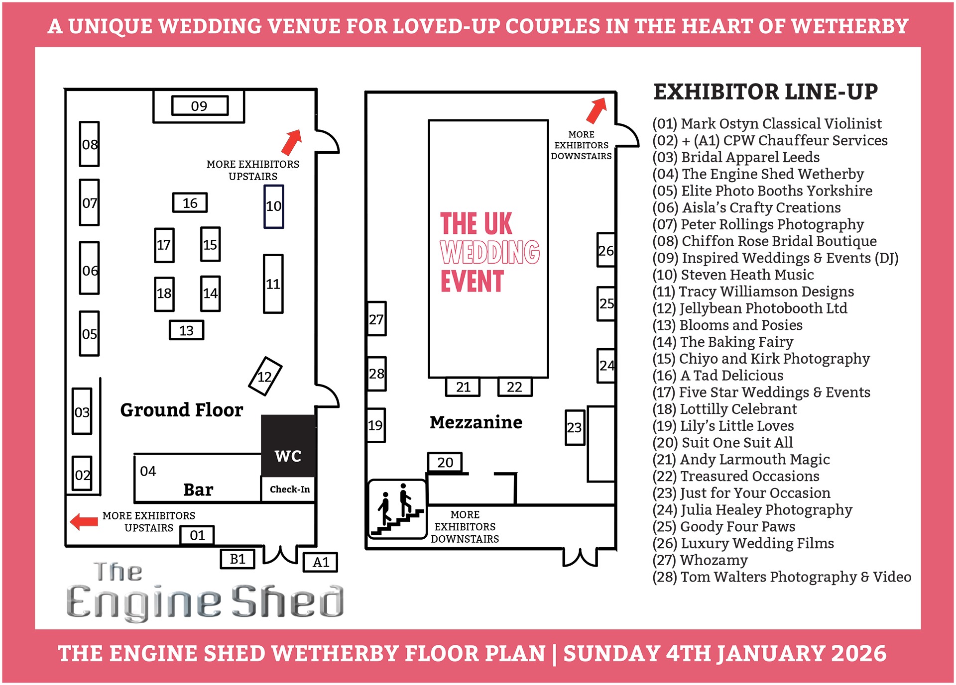 The following wedding suppliers are all signed up to exhibit at our wedding fayre at The Engine Shed Wetherby on Sunday 4th January 2026.