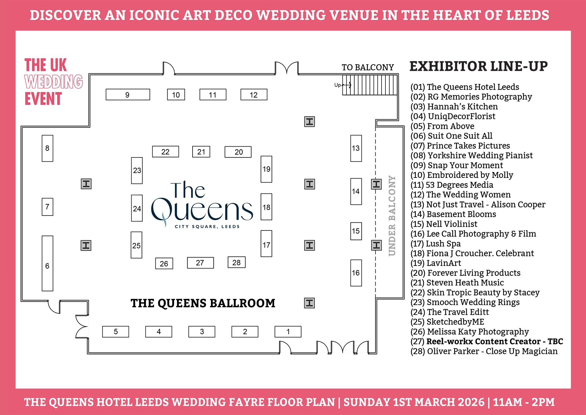 The following wedding suppliers are all took in part in our wedding fayre at The Queens Hotel Leeds on Sunday 1st March 2026.
