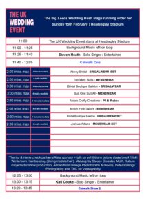 The Big Headingley Stadium Wedding Bash Running Order for Feb 2026 The Big Headingley Stadium Wedding Bash Running Order for Feb 2026